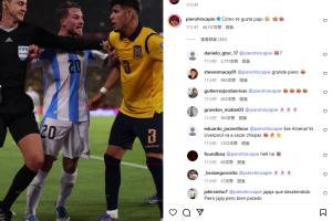 阿根廷客场0-1不敌厄瓜多尔,因卡皮耶放倒马斯坦托诺后,麦卡利斯特为小将出头。 赛后麦卡利斯特和因卡皮耶在社媒上有爱互动,麦卡发社媒还原了当时他说的话:你不是这样的。 因卡皮耶则回复:你就喜欢这样(调侃我),宝贝!...