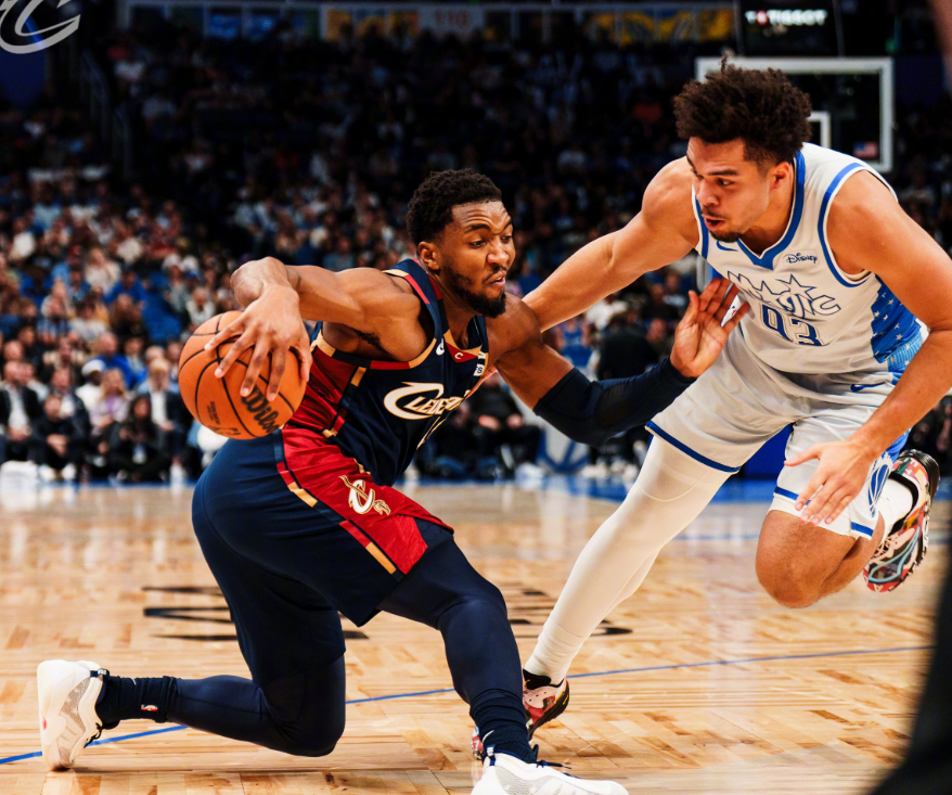 决战第四节,莫布里飞扣,贝恩补篮+造罚球回应。米切尔撤步三分尝试反扑,但萨格斯和班凯罗继续冲击篮下,双方维持在10分左右陷入拉锯战。中段小卡特补扣+萨格斯空位命中三分球,骑士进攻有些停滞。决战时刻,骑士落后12分,哈登对抗打成2+0,班凯罗上篮被盖,埃利斯轰进空位三分球。席尔瓦回应三分,埃利斯继续下三分雨!此后哈登和米切尔也续上三分,骑士在最后20秒追到只差2分!但贝恩无解漂移三分球杀死比赛悬念,最终骑士122-128不敌魔术。
